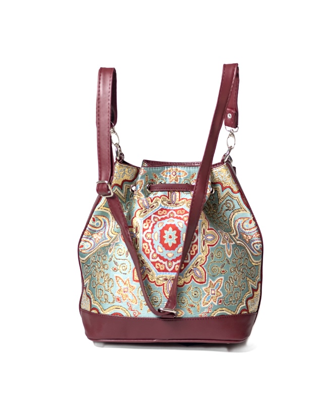 Aegean Sea Burgundy Convertible Vegan Bucket Bag