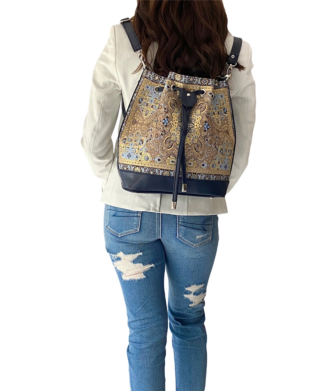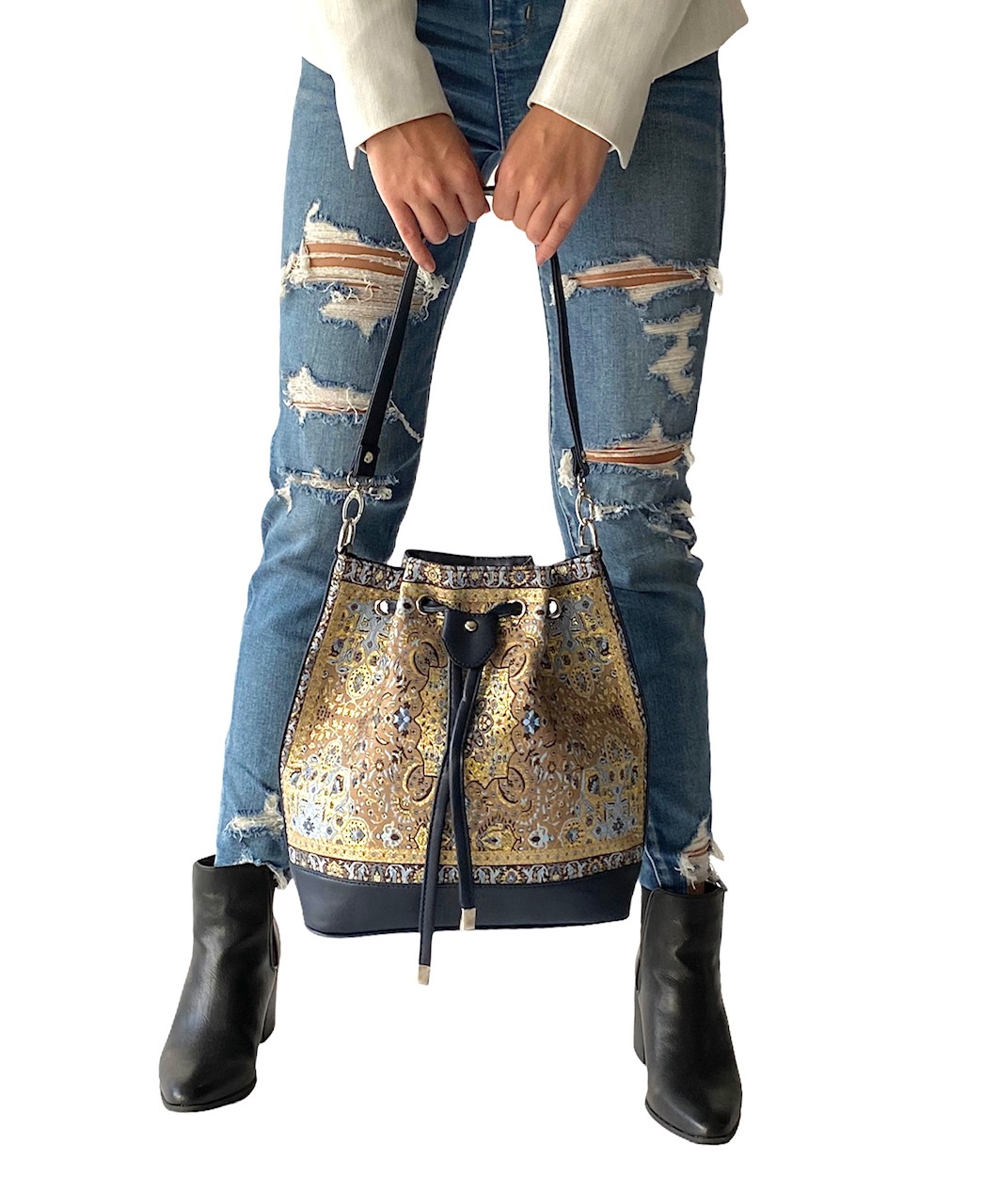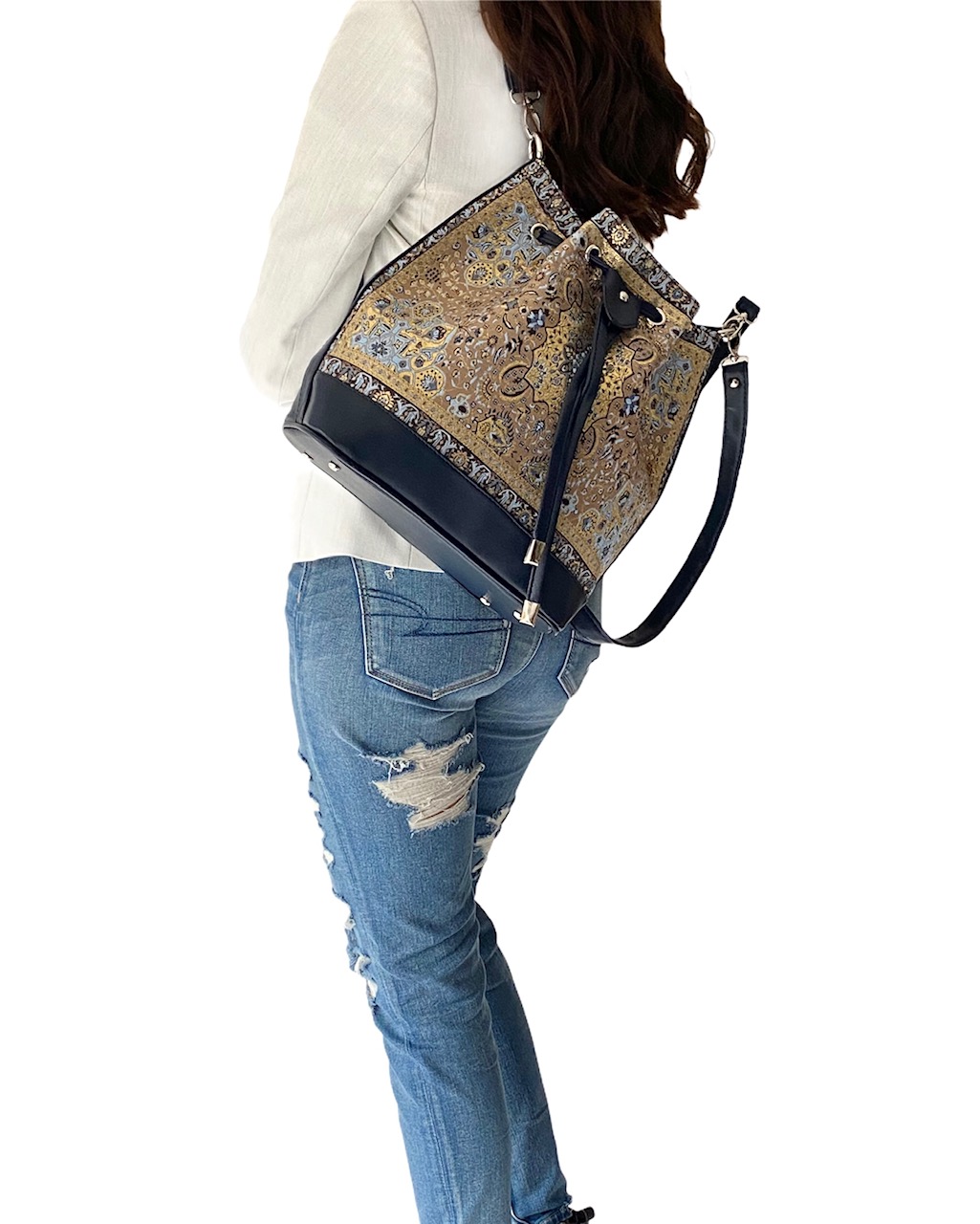 This convertible bucket bag is one of our most popular handbags. Comes with a shoulder strap as well as a long adjustable strap which allows you to use it as a crossbody, adjustable longer shoulder bag, or a backpack. Spacious enough to hold all your essentials. One side has a zipper pocket while the other side has 2 pockets for your phone and any other item which you can access easily.