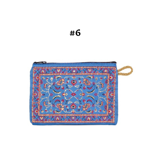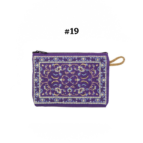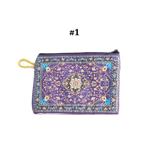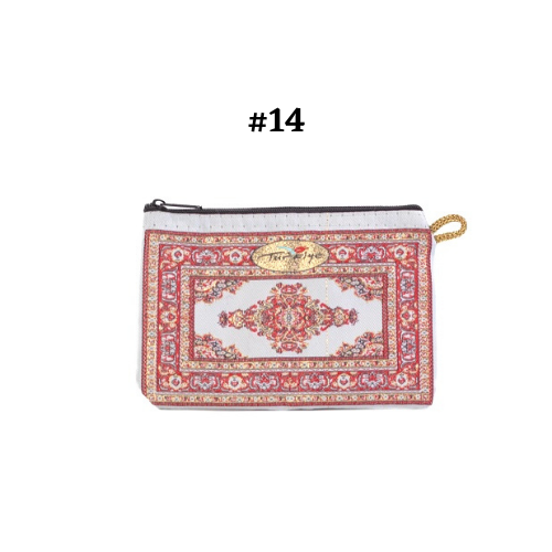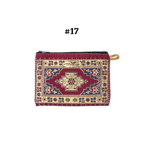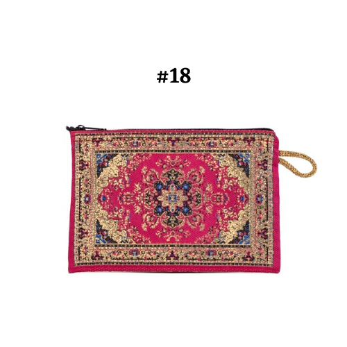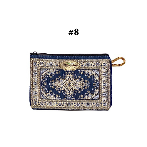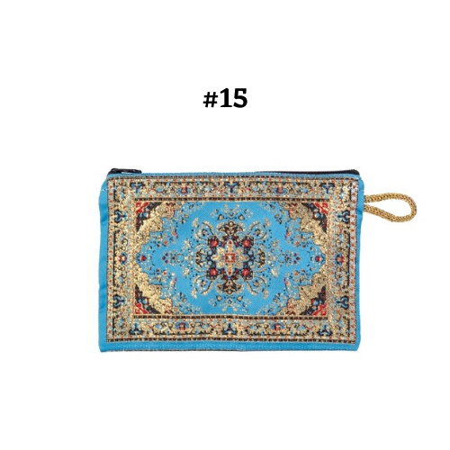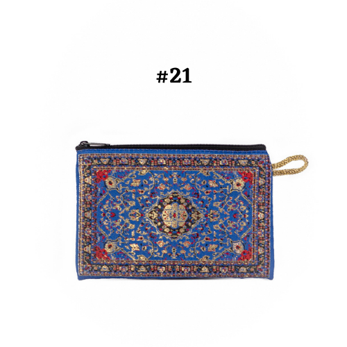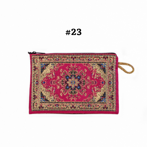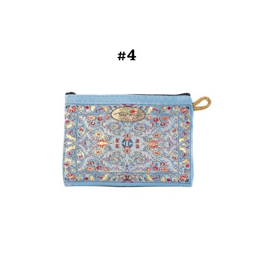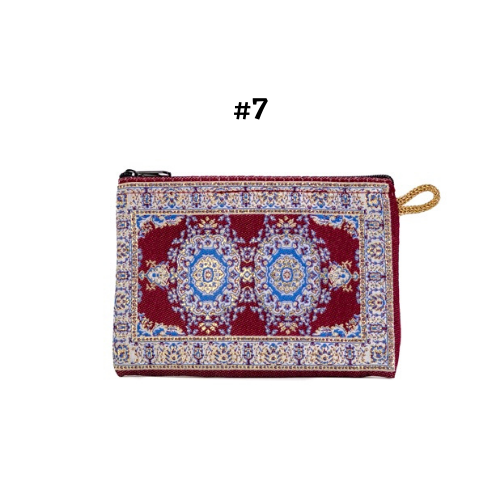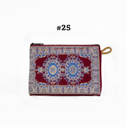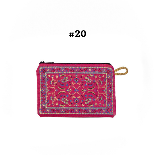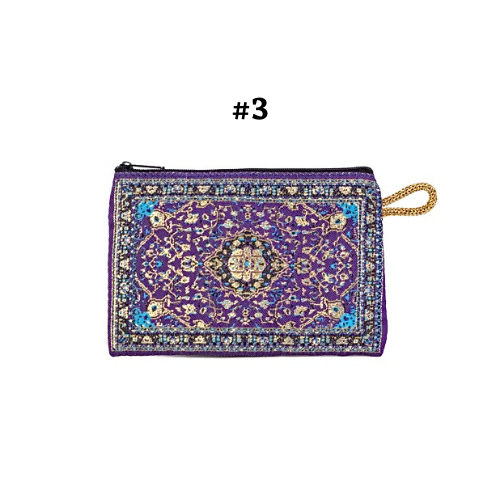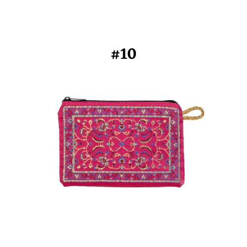 Handmade shimmering kilim design fabric. Use as a coin purse, wallet, card case, or a small storage bag. Comes in multiple colors and patterns to choose from.
