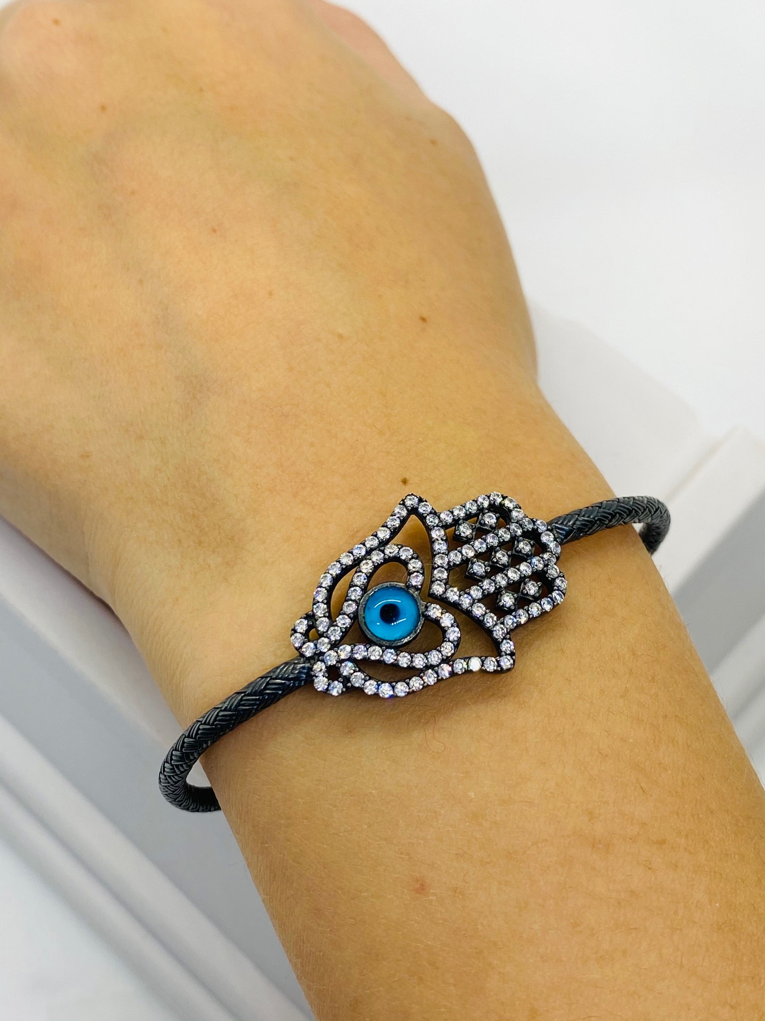 Be the first to review “925 Sterling Silver Gun Metal Hamza Hand Bangle”