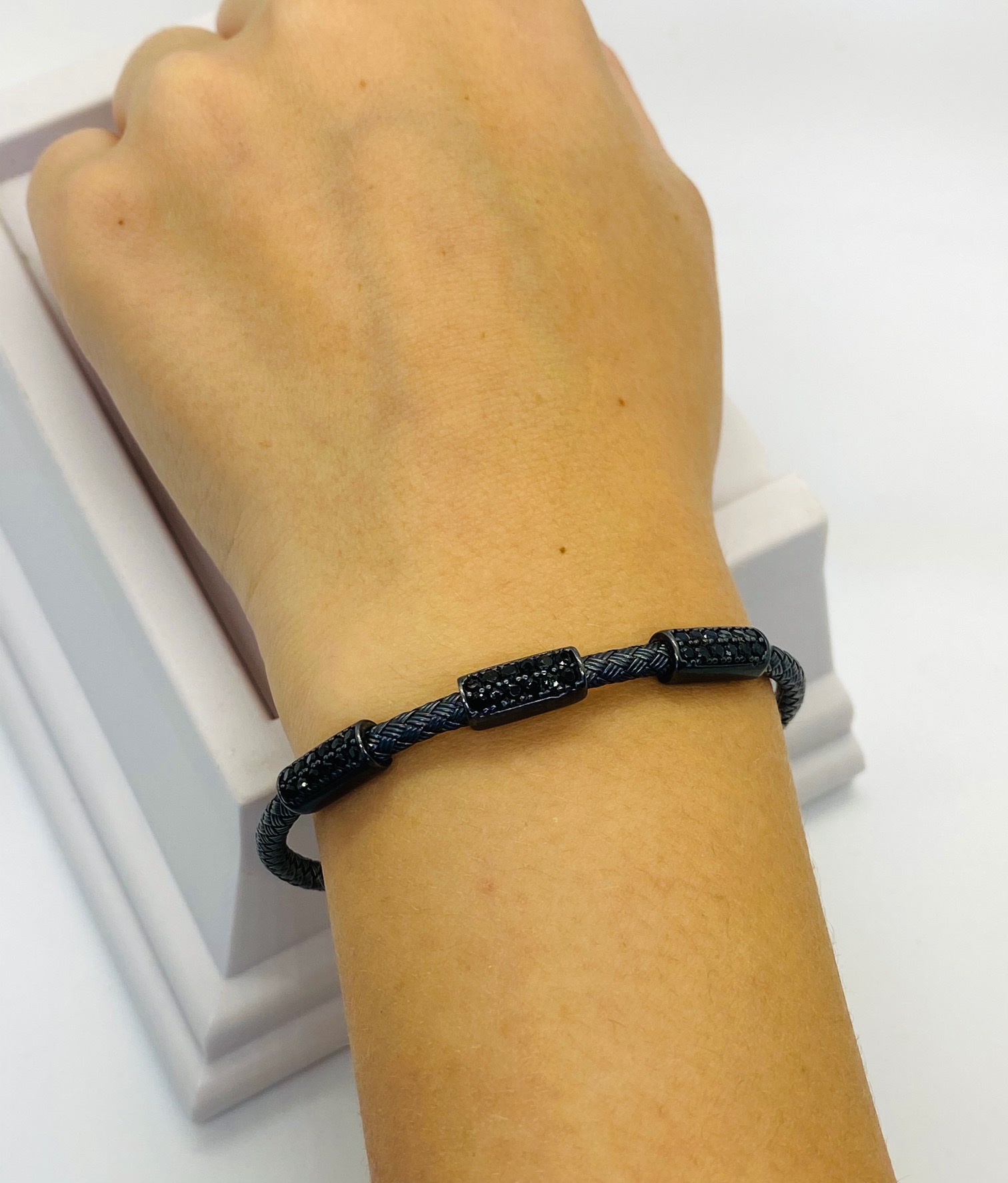 Be the first to review “925 Sterling Silver Gun Metal Italian Mesh Bangle”
