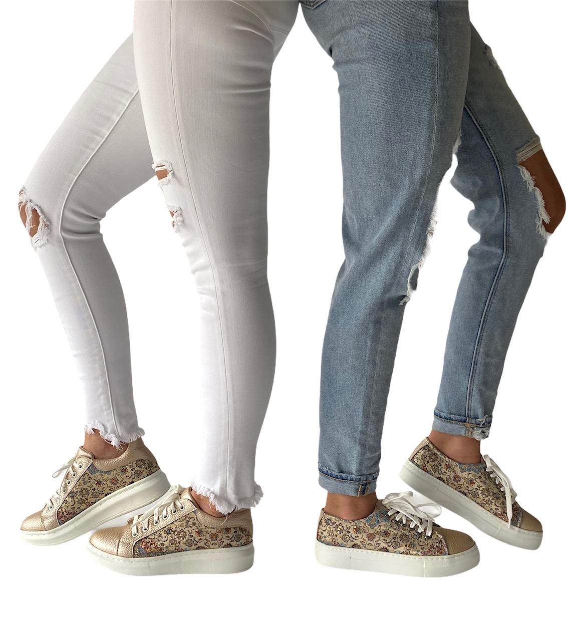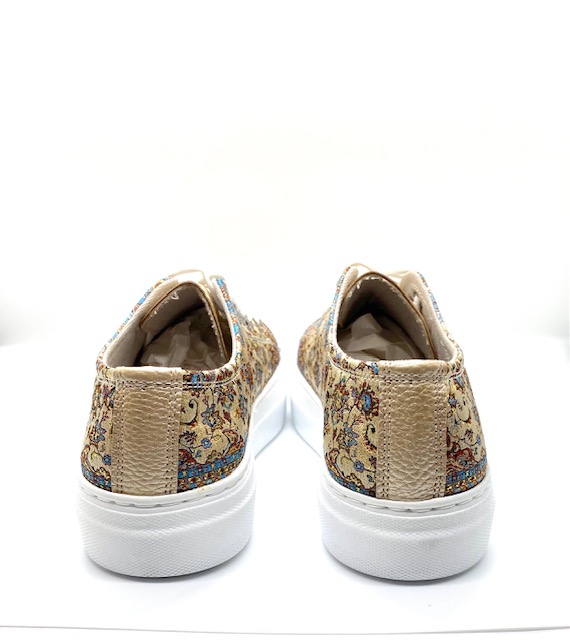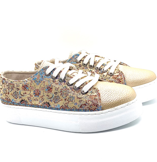 If you love the trend of chunky soles but want something a little sleeker, you’re in luck. An oversized flat rubber heel, woven silk fabric, and soft vegan leather finish this one of a kind look. Coordinate your style with our matching accessories.
