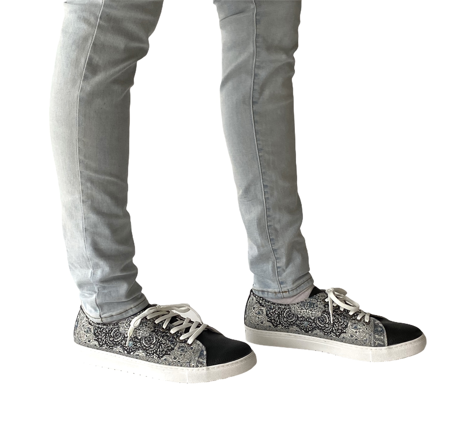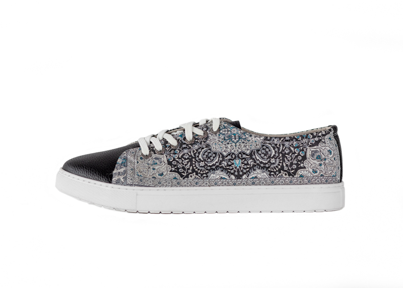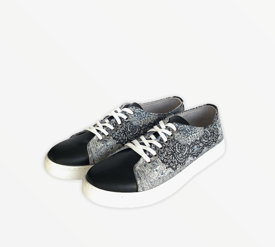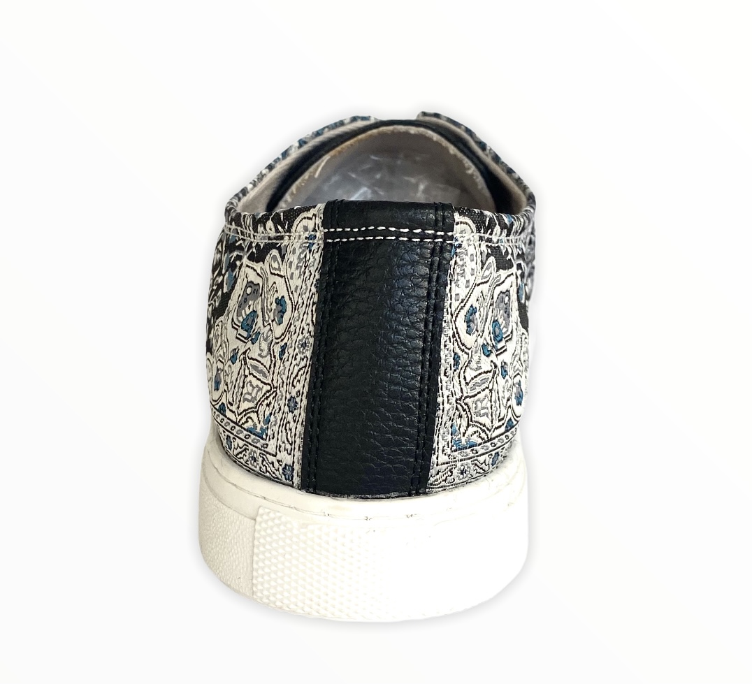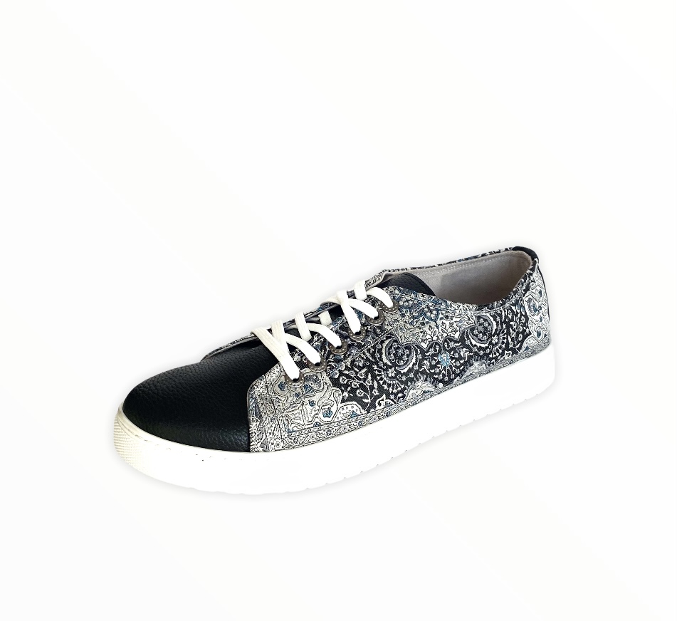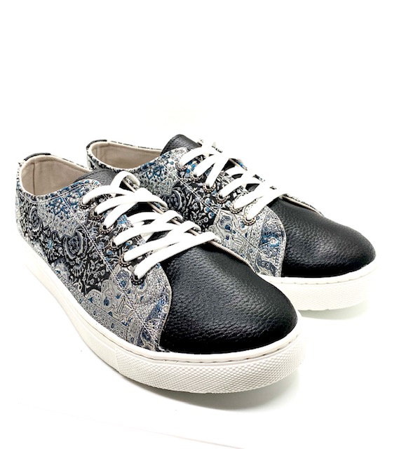 Take your timeless converse up a notch with our fashionable kilim design sneaker.  Made using intricate woven silk fabric and soft vegan leather.  Pairs easily with any outfit for a new look.