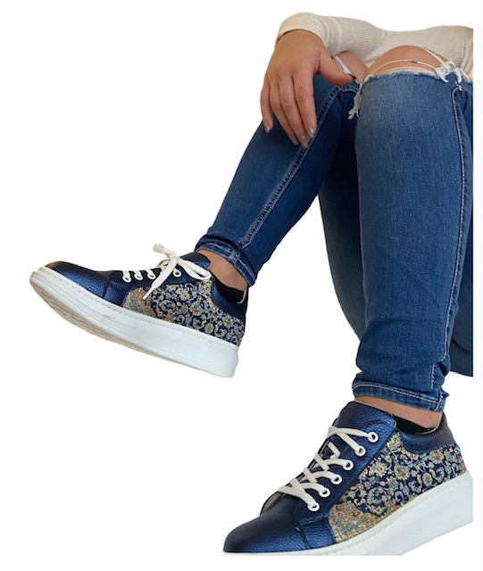 Show off your wild side! Handmade eye-catching platform sneakers. Made using intricate woven silk fabric and soft vegan leather. Trimmed with an oversized rubber sole for extreme comfort and height. Pairs easily with any outfit for a new look.