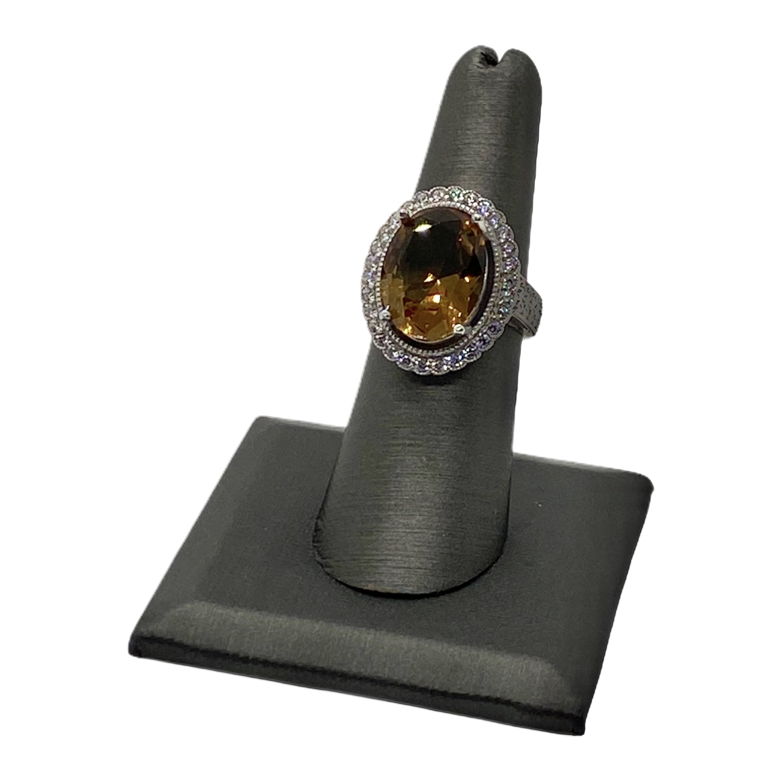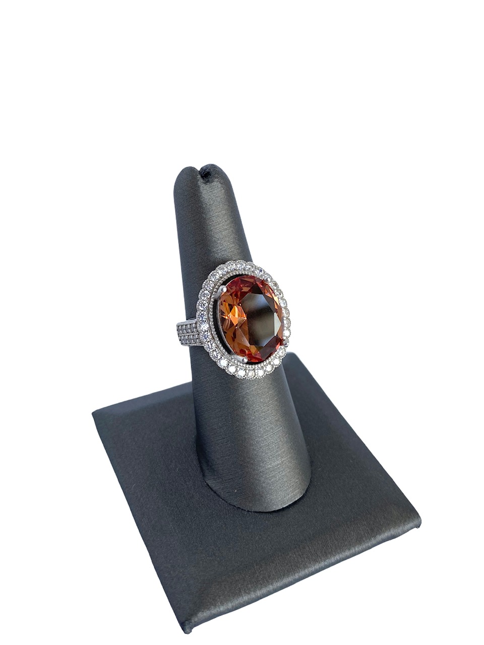 • High-quality CZ stones surrounding the center stone and halfway down the sides