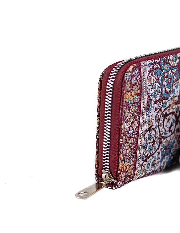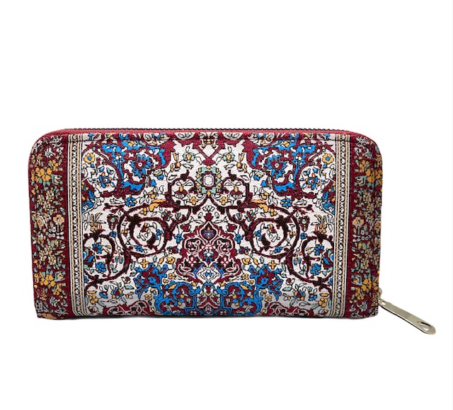 This gorgeous handmade wallet is made using woven silk fabric and vegan leather. Our designs are inspired by the well-known Turkish kilim rugs. Pair it up with a matching handmade handbag to complete the look.